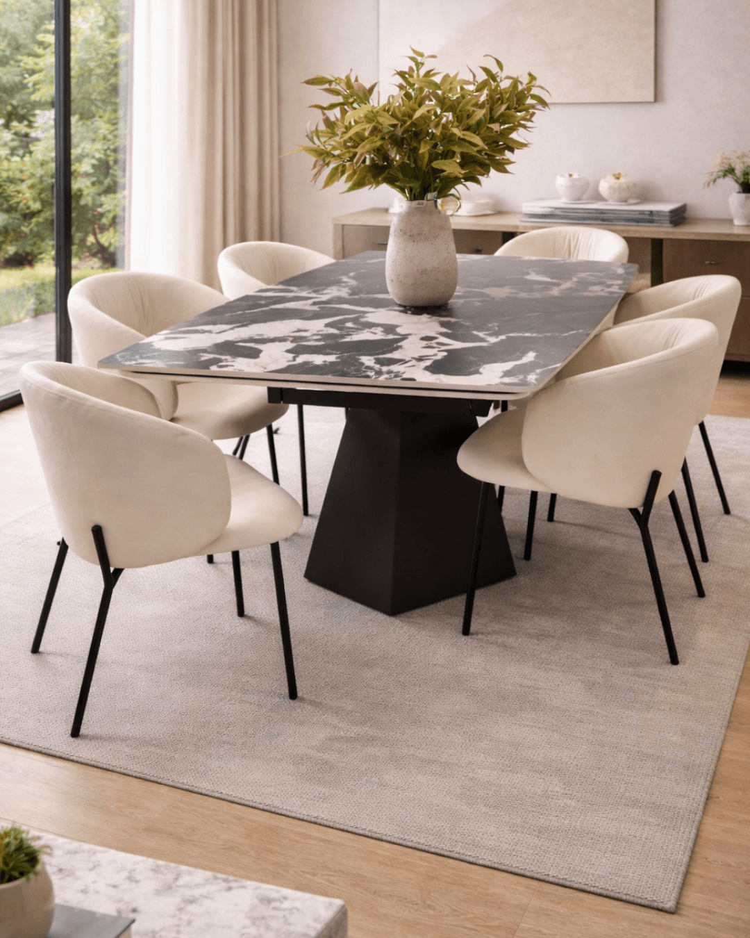פינת אוכל מעוצבת לאירוח יומיומי וחגיגי, חומרים איכותיים ונוחות ישיבה גבוהה || מבחר גדלים, גימורים וכיסאות לבחירה.